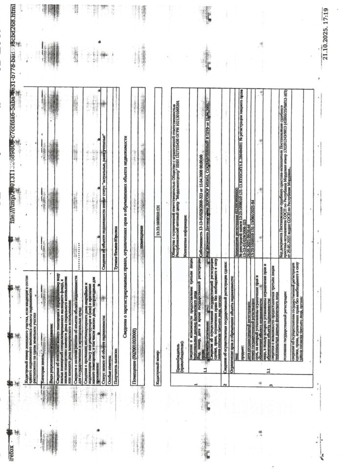 Нежилое помещение общей площадью 121 кв.м., кад. 13:23:1008010:131, расположенное на земельном участке с кад. 13:23:1008010:18, находящемся в муниципальной собственности. Помещение принадлежит должнику ООО Республиканский оптовый центр "Мордовоптцентр", ИНН 1327155438. Сведениями о фактическом состоянии объекта недвижимости, о задолженности по коммунальным платежам организатор торгов не располагает. Техническая документация на объект недвижимости и его фотографии отсутствуют у организатора торгов.