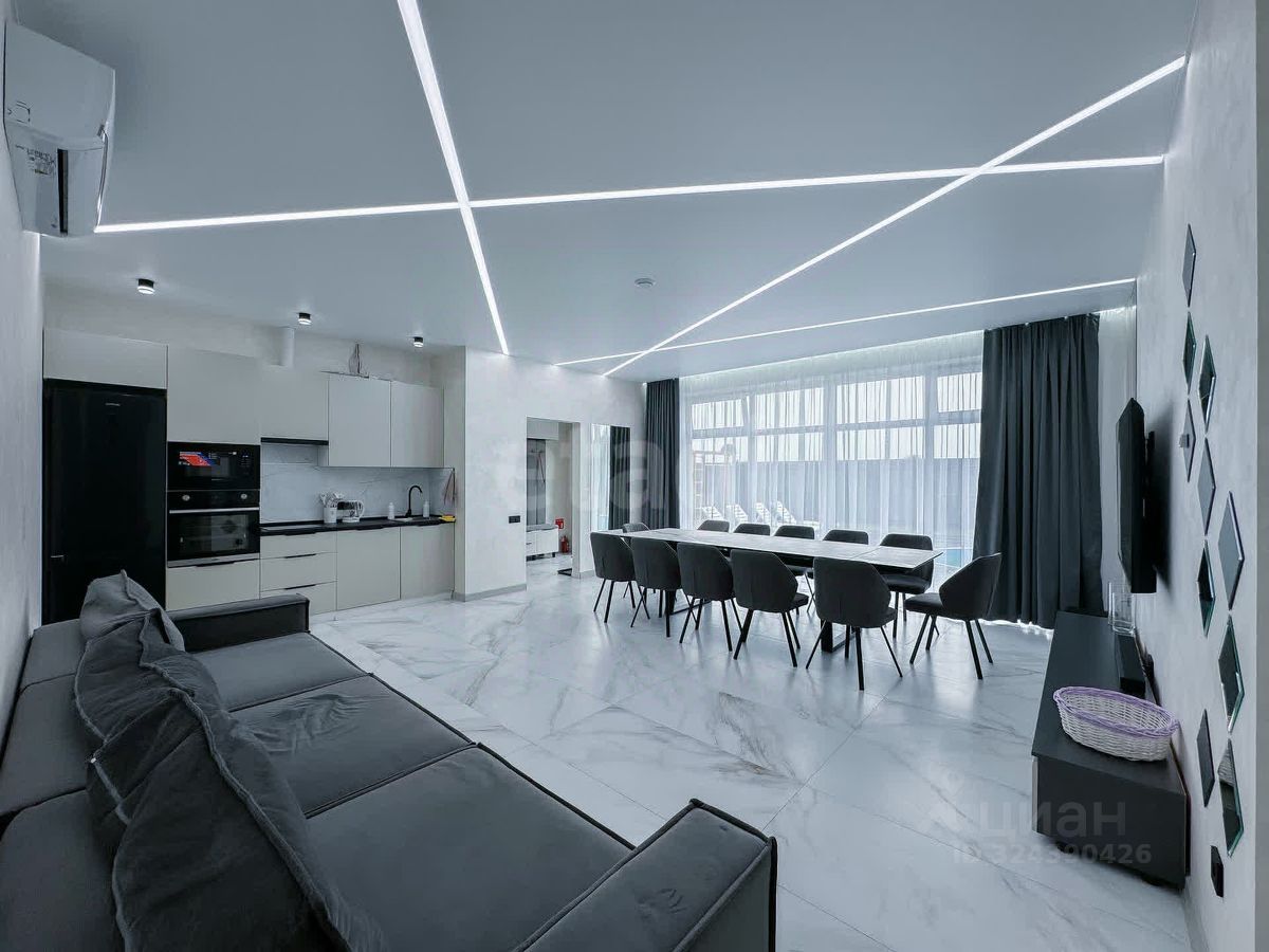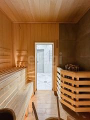 дом состоит из трех спальных комнат, большой уютной гостиной, двух сан узлов, душевой, парной, котельной. Дом полностью мебелирован, оснащен всей необходимой бытовой техникой, кондиционером, музыкальной аппаратурой, пультом управления сауной, двумя котлами для обогрева дома и уличного бассейна. На территории дома располагается подогреваемый бассейн с подсветкой на 36 куб. м., обустроенной мангальной зоной со всем оборудованием для пользования, профессиональной детской площадкой с безопасным резиновым покрытием, покрытие парковочной и мангальной зоны из брусчатки в стиле "Старый город", покрытие зоны отдыха из террасной доски, на территории дома есть фоновая подсветка и музыка, высажены туи и натуральный газон.
