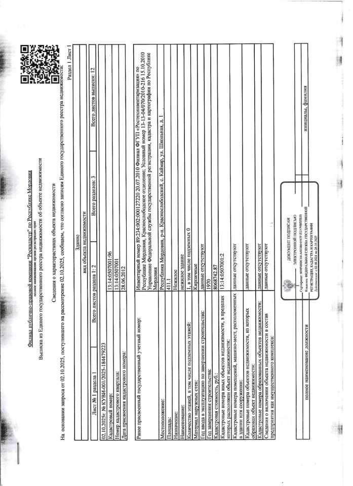 Нежилое здание общей площадью 411,1 кв.м., кад. 13:14:0507001:96, и земельный участок площадью 23000+/-106 кв.м., кад. 13:14:0507001:2, категория земель: земли населённых пунктов, виды разрешённого использования: для эксплуатации зданий и сооружений. Объекты недвижимости принадлежат должнику Батину М.Н. Сведениями о фактическом состоянии объекта недвижимости, о задолженности по коммунальным платежам организатор торгов не располагает. Техническая документация на объект недвижимости и его фотографии отсутствуют у организатора торгов.
