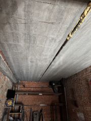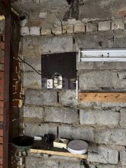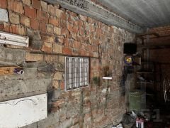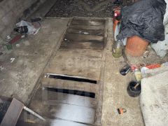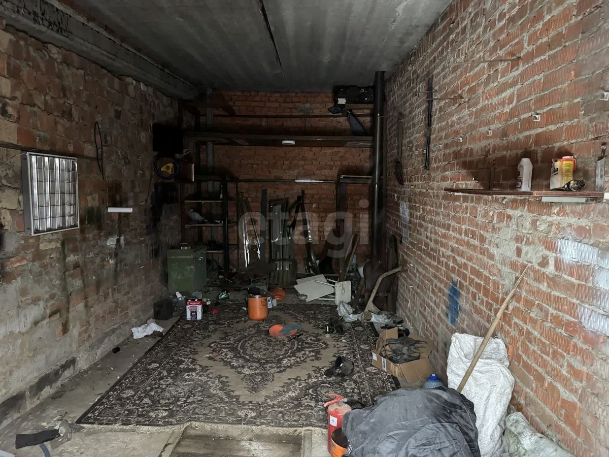 Гараж кирпичный, двери распашные, железные, пол бетонный, постелены доски! Погреб под всем гаражом.