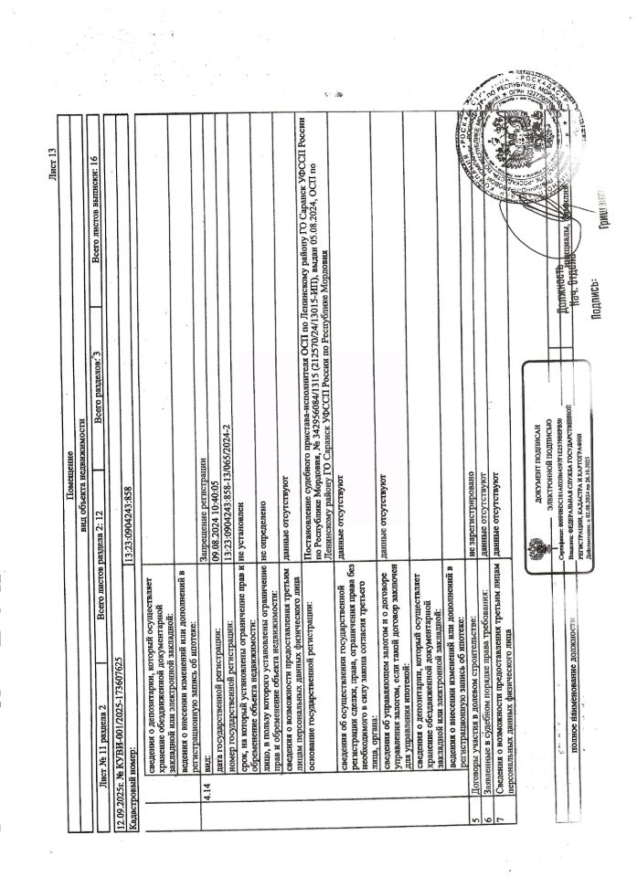 Нежилое помещение общей площадью 5,3 кв.м., кад. 13:23:0904243:858, этаж - 1, находящееся в пределах объекта недвижимости с кад. 13:23:0904243:794, принадлежит должнику ООО Специализированный застройщик "Строительно-монтажное управление-33", ИНН 1326208140. Сведениями о фактическом состоянии объекта недвижимости, о задолженности по коммунальным платежам и взносам на капитальный ремонт организатор торгов не располагает. Техническая документация на объект недвижимости и его фотографии отсутствуют у организатора торгов.