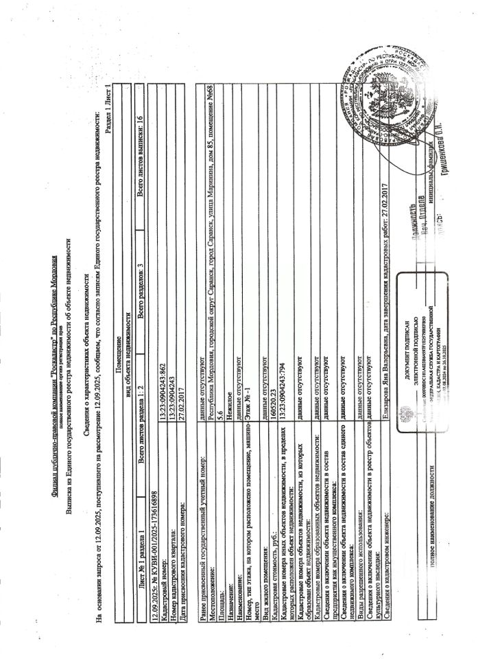 Нежилое помещение общей площадью 5,6 кв.м., кад. 13:23:0904243:862, этаж -1, находящееся в пределах объекта недвижимости с кад. 13:23:0904243:794, принадлежит должнику ООО Специализированный застройщик "Строительно-монтажное управление-33", ИНН 1326208140. Сведениями о фактическом состоянии объекта недвижимости, о задолженности по коммунальным платежам и взносам на капитальный ремонт организатор торгов не располагает. Техническая документация на объект недвижимости и его фотографии отсутствуют у организатора торгов.