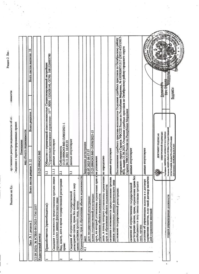 Нежилое помещение общей площадью 5,3 кв.м., кад. 13:23:0904243:860, этаж 1, находящееся в пределах объекта недвижимости с кад. 13:23:0904243:794, принадлежит должнику ООО Специализированный застройщик "Строительно-монтажное управление-33", ИНН 1326208140. Сведениями о фактическом состоянии объекта недвижимости, о задолженности по коммунальным платежам и взносам на капитальный ремонт организатор торгов не располагает. Техническая документация на объект недвижимости и его фотографии отсутствуют у организатора торгов.