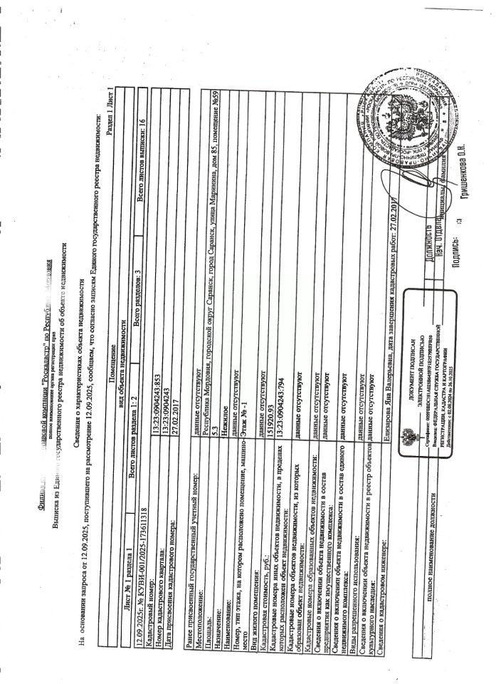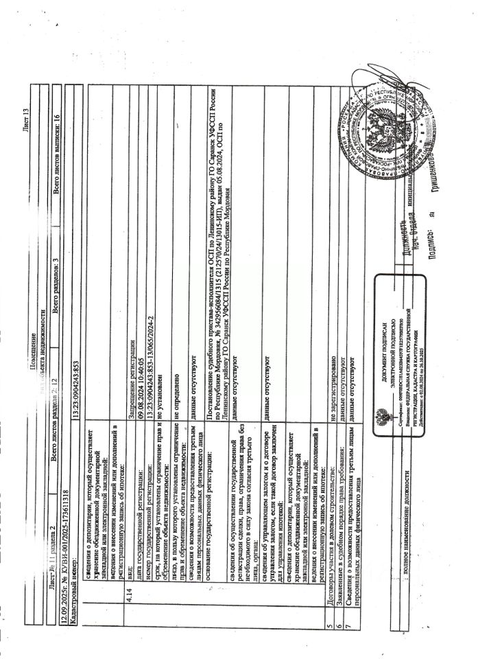 Нежилое помещение общей площадью 5,3 кв.м., , кад. 13:23:0904243:853, этаж -1, находящееся в пределах объекта недвижимости с кад. 13:23:0904243:794, принадлежит должнику ООО Специализированный застройщик "Строительно-монтажное управление-33", ИНН 1326208140. Сведениями о фактическом состоянии объекта недвижимости, о задолженности по коммунальным платежам и взносам на капитальный ремонт организатор торгов не располагает. Техническая документация на объект недвижимости и его фотографии отсутствуют у организатора торгов.