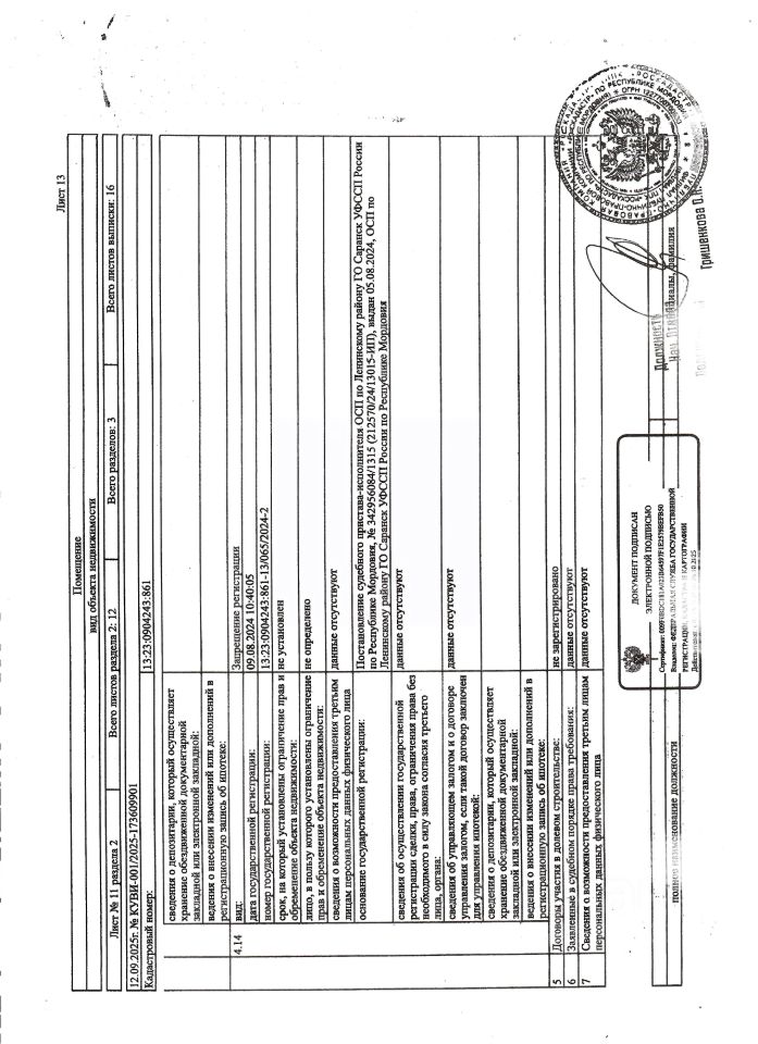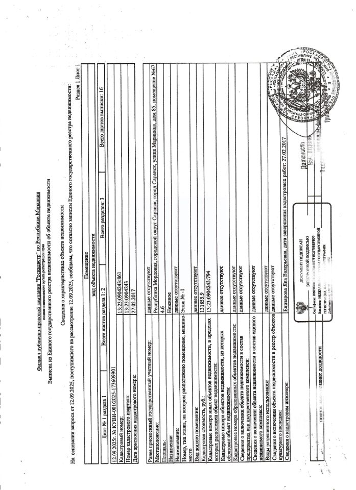 Нежилое помещение общей площадью 4,6 кв.м., кад. 13:23:0904243:861, этаж -1, находящееся в пределах объекта недвижимости с кад. 13:23:0904243:794, принадлежит должнику ООО Специализированный застройщик "Строительно-монтажное управление-33", ИНН 1326208140. Сведениями о фактическом состоянии объекта недвижимости, о задолженности по коммунальным платежам и взносам на капитальный ремонт организатор торгов не располагает. Техническая документация на объект недвижимости и его фотографии отсутствуют у организатора торгов.