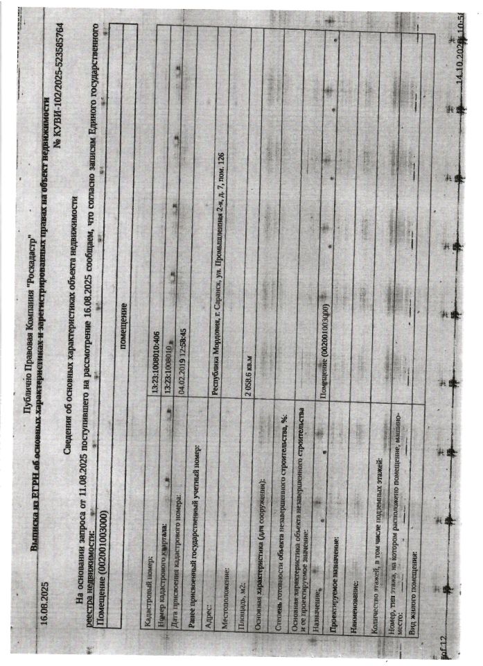 Нежилое помещение общей площадью 2 058,6 кв.м., кад. 13:23:1008010:406, расположенное в пределах объекта недвижимости с кад. 13:23:1008010:179, принадлежащее должнику ООО Республиканский оптовый центр "Мордовоптцентр", ИНН 1327155438. Здание расположено на земельном участке, находящемся в муниципальной собственности. Сведениями о фактическом состоянии объекта недвижимости, о задолженности по коммунальным платежам организатор торгов не располагает. Техническая документация на объект недвижимости и его фотографии отсутствуют у организатора торгов.