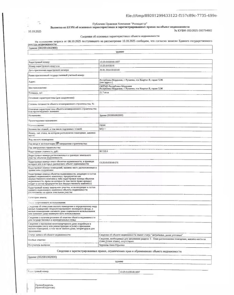 Нежилое здание (гараж) общей площадью 21,7 кв.м., кад. 13:25:0103016:1697, находящийся в пределах объекта недвижимости с кад. 13:25:0103016:676, принадлежащий должнику Антонову П.А. Земельный участок, находящийся под зданием, является муниципальной собственностью и находится в пользовании у должника на основании Договора аренды 3-12 от 12.01.2012г., заключенного сроком на 20 лет. Сведениями о фактическом состоянии объекта недвижимости организатор, о задолженности по обязательным платежам торгов не располагает. Техническая документация на объект недвижимости и его фотографии отсутствуют у организатора торгов.