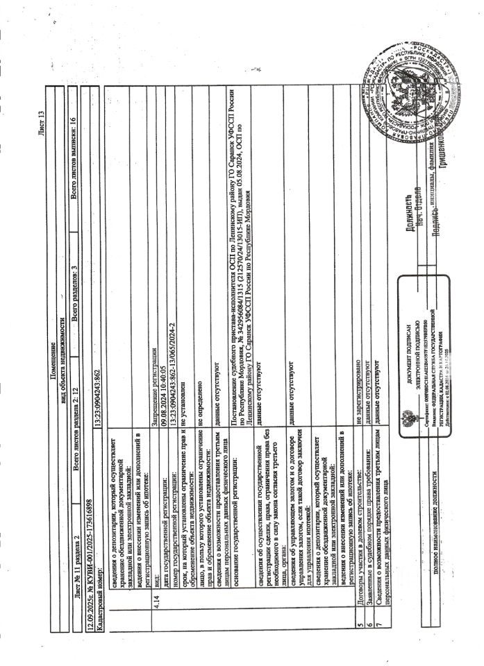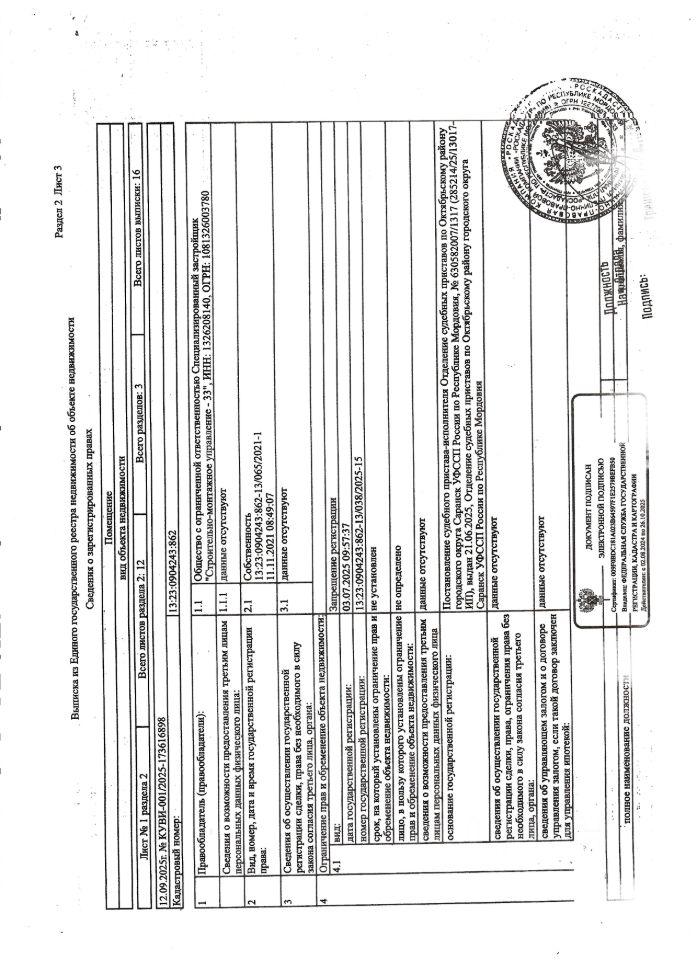 Нежилое помещение общей площадью 5,6 кв.м., кад. 13:23:0904243:862, этаж -1, находящееся в пределах объекта недвижимости с кад. 13:23:0904243:794, принадлежит должнику ООО Специализированный застройщик "Строительно-монтажное управление-33", ИНН 1326208140. Сведениями о фактическом состоянии объекта недвижимости, о задолженности по коммунальным платежам и взносам на капитальный ремонт организатор торгов не располагает. Техническая документация на объект недвижимости и его фотографии отсутствуют у организатора торгов.