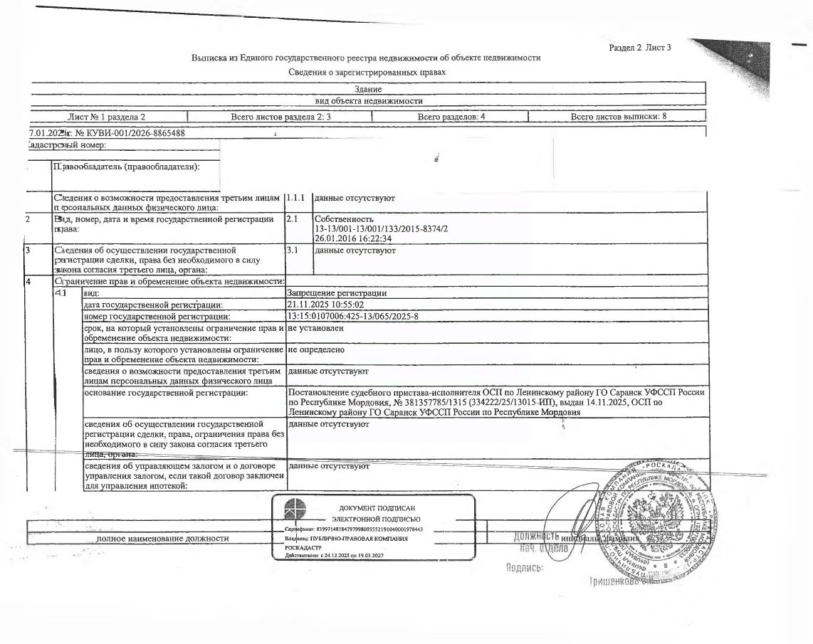 Нежилое помещение (баня) общей площадью 105,6 кв.м., кад. 13:15:0107006:425, и земельный участок площадью 450+/-7 кв.м., кад. 13:15:0107006:576, категория земель: земли населённых пунктов, виды разрешённого использования: для ИЖС. Объекты недвижимости принадлежат должнику Земкину О.П. Сведениями о фактическом состоянии объектов недвижимости организатор торгов не располагает. Техническая документация на объекты недвижимости и фотографии отсутствуют у организатора торгов.