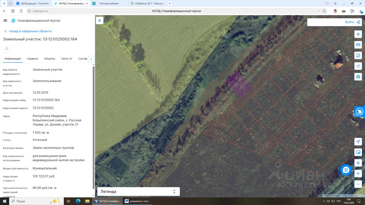Республика Мордовия, Ковылкинский район, с. Русская Лашма, ул. Дачная, участок 21, с кадастровым номером 13:12:0125002:164, категория земель: земли населенных пунктов, вид разрешенного использования: для размещения дома индивидуальной жилой застройки, площадью 1 500,0 кв.м.