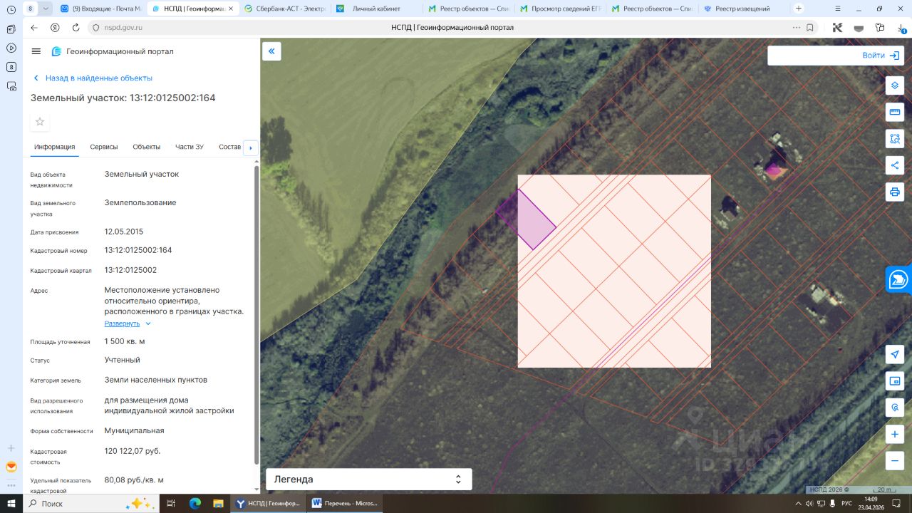 Республика Мордовия, Ковылкинский район, с. Русская Лашма, ул. Дачная, участок 21, с кадастровым номером 13:12:0125002:164, категория земель: земли населенных пунктов, вид разрешенного использования: для размещения дома индивидуальной жилой застройки, площадью 1 500,0 кв.м.