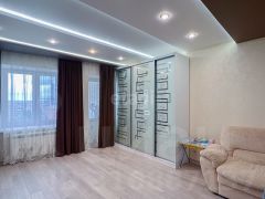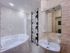 В квартире сделан современный ремонт из качественных материалов. Многоуровневые потолки с продуманным освещением, на полу ламинат высокой прочности, двери из массива.