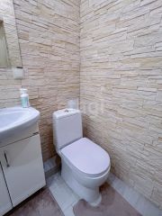 Санузел совмещенный, отделан плиткой и декоративным камнем.