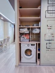В прихожей оборудован большой шкаф-купе для хранения вещей, стиральной машины и принадлежностей.
