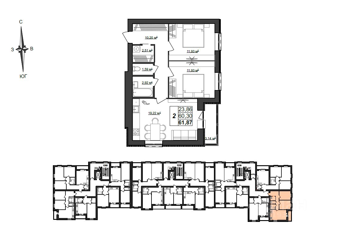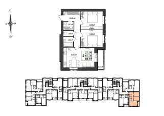 Продаётся 2-комнатная квартира в строящемся доме (Дом 1), срок сдачи: II-кв. 2026, общей площадью 61.87 кв.м., на 5 этаже. Новый жилой комплекс от группы компаний "БИНА" расположен по адресу: г. Саранск, по ул. Большевистская.