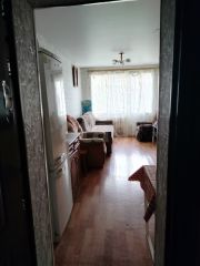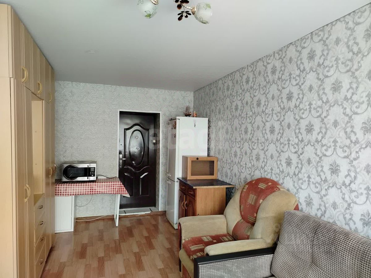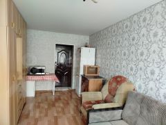 Продается комната 16 кв. м. в общежитии коридорного типа. Объект не требует согласования с соседями, что упрощает сделку. Комната не угловая. В помещении установлено пластиковое окно, металлическая входная дверь и натяжной потолок. Вся мебель остается новому владельцу: диван, два кресла, большой шкаф, стол и тумба. Также в комнате присутствует необходимая бытовая техника — холодильник, телевизор и микроволновка, что позволяет заселиться сразу после покупки. На этаже общая кухня, туалет, душевая. В подъезде и придомовой территории убираются, поэтому всегда чисто.