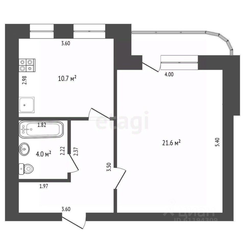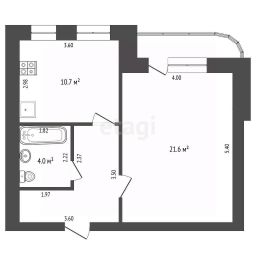 Квартира улучшенной планировки, общая площадь 44,2 м.кв.