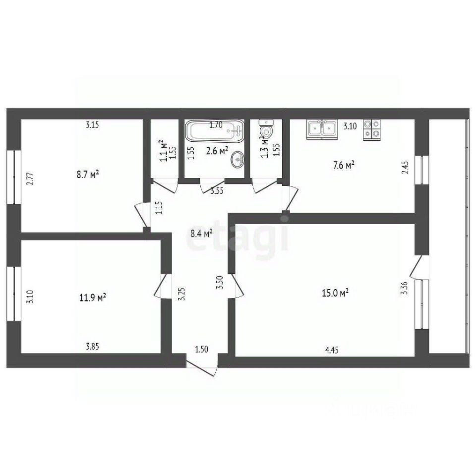Продается трехкомнатная квартира улучшенной планировки площадью 58 кв. м, расположена на четвертом этаже пятиэтажного дома в центральном районе города. Пространство организовано рационально: раздельный санузел, изолированные комнаты, застекленная лоджия с металлической рамой. Окна выходят на разные стороны, обеспечивая хорошую инсоляцию в течение дня. В квартире выполнен качественный косметический ремонт: натяжные потолки, пластиковые окна, исправная сантехника и электрика. В гостиной установлен кондиционер, кухня оснащена функциональным гарнитуром, который остается новым владельцам.