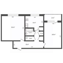 Продается светлая 2-х комнатная квартира площадью 49,3 м² с двумя изолированными комнатами. Квартира расположена на высоком 1 этаже панельного 9-этажного дома.