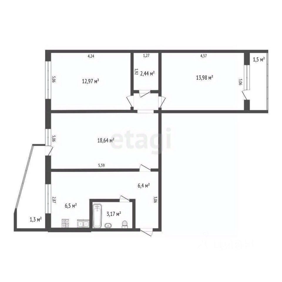 Общая площадь квартиры — 64,1 м2 (!) без учета двух лоджий, кухня площадью 6,5 м2. Квартира идеально подойдет для жильцов, которые по своему вкусу и желанию хотят воплотить свои идеи об устройстве жилья, не переплачивая за чужой ремонт. Потолки отшпаклеваны, покрашены белой краской, на полу линолеум. Санузел совмещенный и выложен кафелем. Квартира тёплая за счёт пластиковых окон и чугунных батарей, которые установлены в каждой комнате по две штуки! Две лоджии, одна из которых застеклена алюминиевой рамой, а в другой установлена пластиковая рама. Удачная планировка: окна выходят на две стороны дома во двор, поэтому шум дорог не страшен. Поставлены счетчики на горячую и холодную воду. В 2022 году был проведен капитальный ремонт крыши, поэтому проблем с крышей нет. Стояк менянный в 2024 году. Домофон. Приятным бонусом выступает наличие кладовки для хранения сезонных вещей и продовольствия.