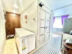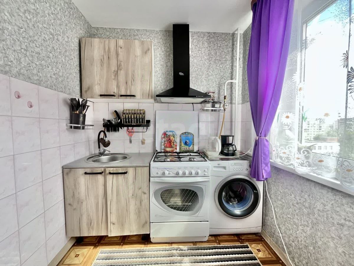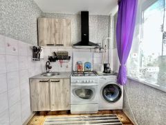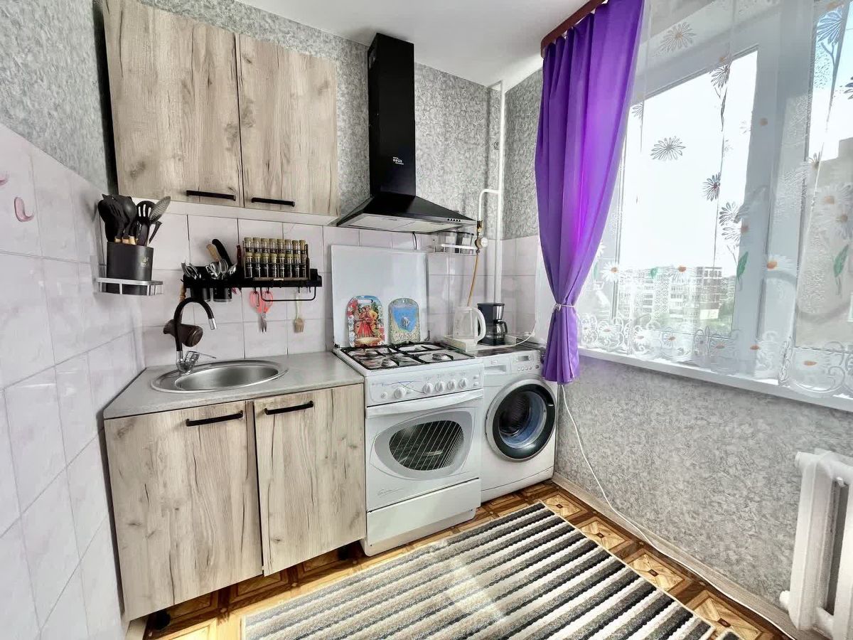 Планировка практичная: изолированная комната с выходом на балкон, раздельный санузел, обшитый влагостойкими панелями, и просторная кухня 6,5 кв. м, где остается кухонный гарнитур и холодильник. Также в подарок новому хозяину квартиры остается стиральная машинка, шкафы. Дополнительную безопасность обеспечивает новая металлическая входная дверь.