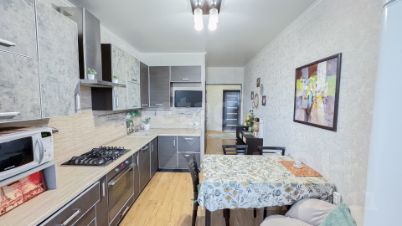 - Современный ремонт: окна из высококачественного дерева, безупречно ровные натяжные потолки и стильный ламинат на полу.