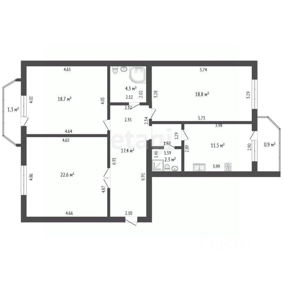 - Общая площадь: 95,5 квадратных метров.