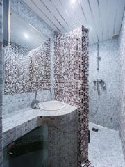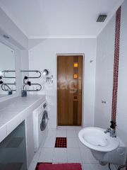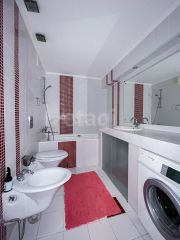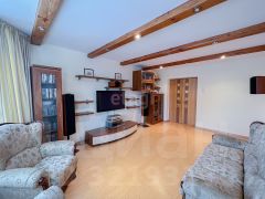 В квартире сделан дизайнерский ремонт из премиальных материалов. Очень удобная кухня-столовая. Все комнаты изолированные, выходят на обе стороны дома. Напольное покрытие в прихожей и на кухне — кафель, в комнатах — паркетная доска, стены выровнены и покрашены, окна ПВХ, качественные межкомнатные двери.