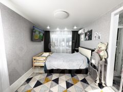 Квартира с современным ремонтом, установлены пластиковые окна, натяжные потолки, в комнате на полу ламинат, в коридоре и кухне керамогранит, установлены теплые полы. Санузел совмещен, обложен кафелем, входная дверь железная.