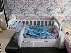 В отделке использованы практичные материалы: стены ванной комнаты полностью облицованы кафелем, а на кухне установлен современный кондиционер. Часть мебели, включая кухонный гарнитур и шкаф-купе в прихожей, остается новому владельцу, что минимизирует дополнительные затраты. Жилой комплекс формирует благоустроенную территорию с детской игровой зоной и большой парковкой, оснащенной шлагбаумом.