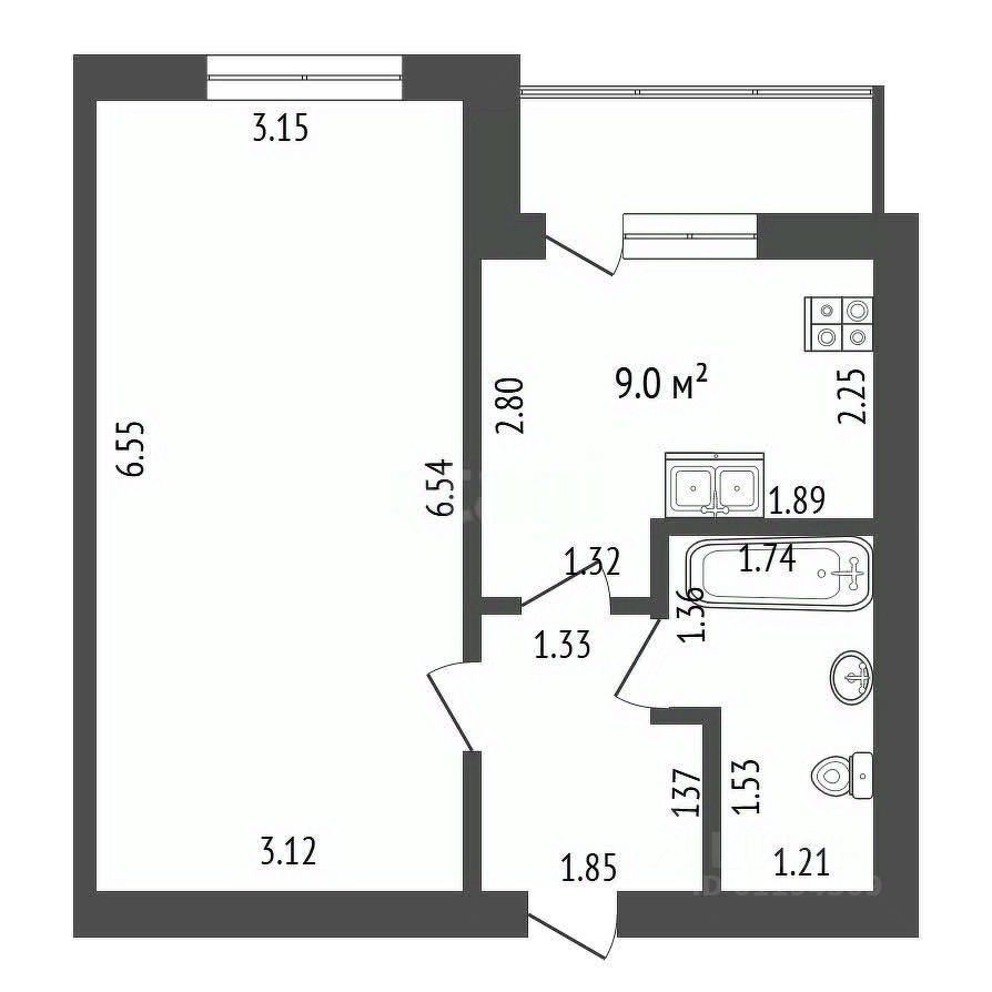 - Общая площадь: 36,4 кв.м., включая просторную комнату площадью 20,6 кв.м. и функциональную кухню размером 9 кв.м.