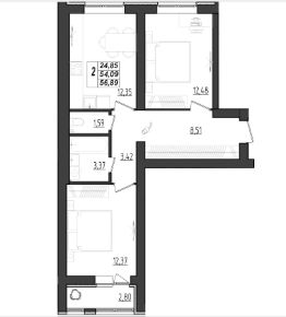 Общая площадь56,89 м²