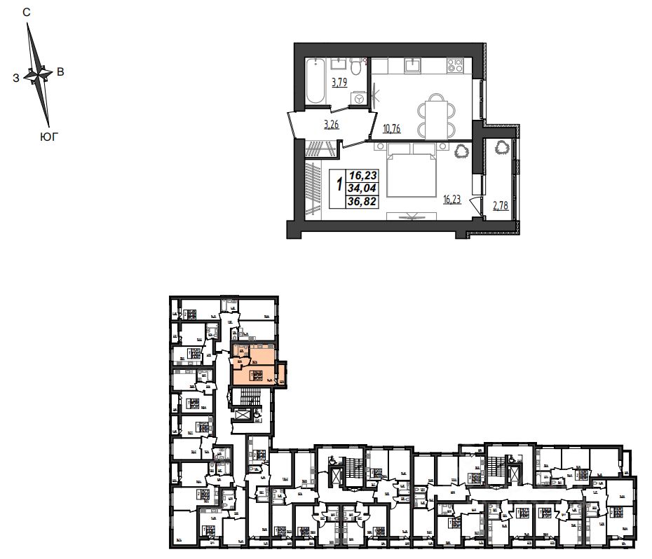 Общая площадь36,82 м²