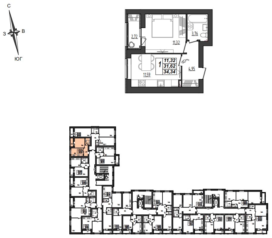 Общая площадь34,34 м²