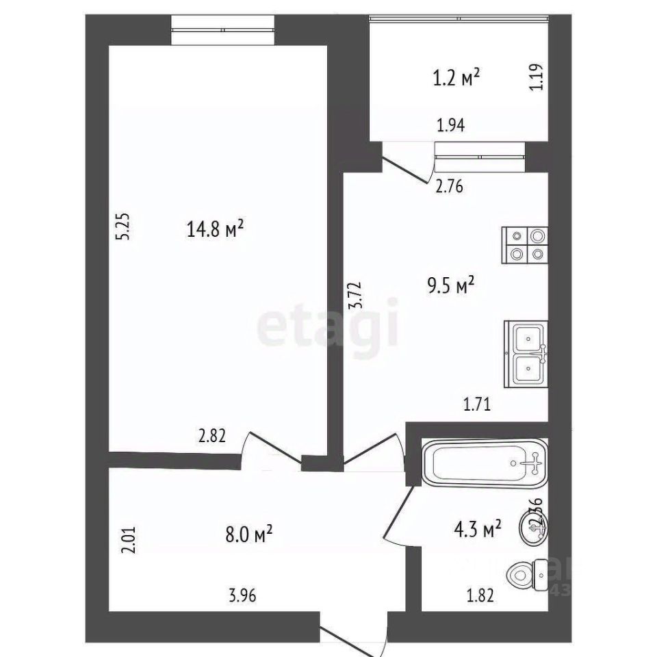 Общая площадь квартиры 38.23 кв. м. Кухня 9.84 кв. м, жилая 15.12 кв. м. Санузел совмещенный площадью 4.2 кв. м. Выход на лоджию с кухни. Отопление индивидуальное. Окна выходят на соседний дом, во двор.
