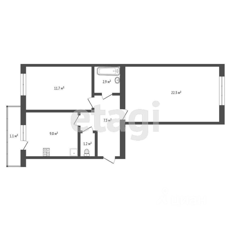Квартира не угловая, окна на разные стороны. Площадь квартиры 54,4 кв. м. Кухня — 9 кв. м. Высота потолков 2,75 м. Окна и балконная рама пластиковые. Полы и стены выровнены по маякам, санузел окрашен. Закрытый тихий двор, на въезде — шлагбаум. По периметру дома установлены камеры видеонаблюдения.