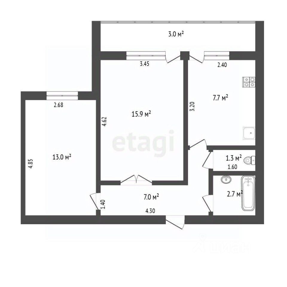 Общая площадь 47,9 м². Кухня просторная — 7,7 м². Санузел раздельный. В квартире выполнен частичный ремонт, что дает возможность реализовать свои дизайнерские идеи.