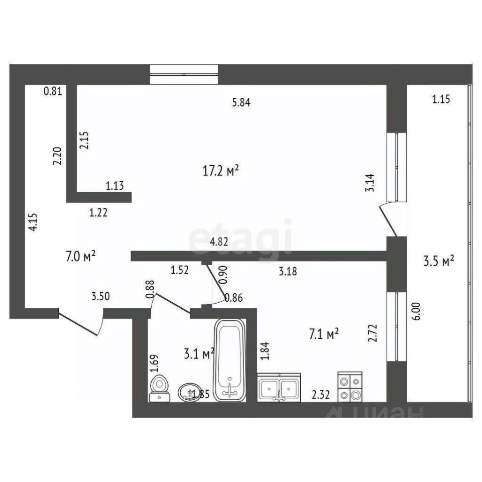 17,2 м²