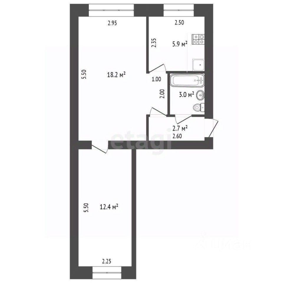 Планировка рациональна и комфортна: смежные комнаты площадью 12,4 и 18,2 кв. м расположены на разные стороны дома, что обеспечивает приватность и тишину. Просторная кухня 5,9 кв. м.