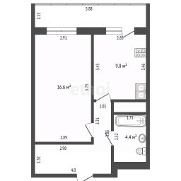 Общая площадь 42,5 м2.
