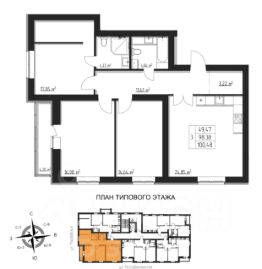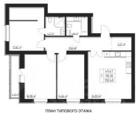 -Продаётся 3-комнатная квартира общей площадью 100,48 м2, на 3 этаже 8 этажного кирпичного дома.