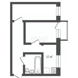 Двухкомнатная квартира площадью 43,1 кв. м расположена на втором этаже пятиэтажного кирпичного дома в самом центре города.