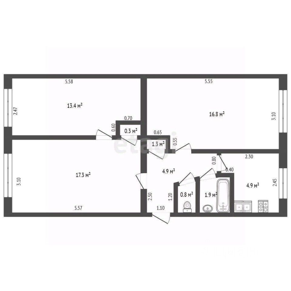 - Проходной зал и первая спальня — 17 м², идеально подойдут для комфортной жизни и отдыха.