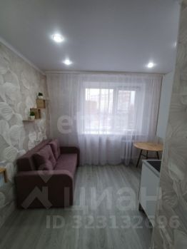 Комната полностью укомплектована необходимой мебелью, включая кухонный пенал, мягкую мебель, шкаф для хранения, стулья и журнальный стол, что позволяет заселиться без дополнительных затрат.