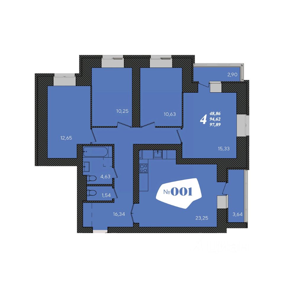 Продаётся 4-комнатная квартира в сданном доме (Кирова, 9), срок сдачи: IV-кв. 2024, общей площадью 97.6 кв.м., на 1 этаже.