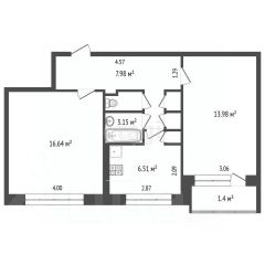 - Площадь зала: 16,6 м².