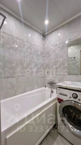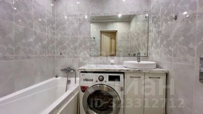 Санузел совмещённый и отделан кафелем. Стиральная машинка 2 в 1 (машинка/сушилка).