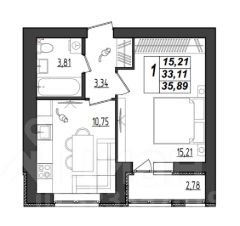 -Продаётся 1-комнатная квартира в строящемся доме, срок сдачи: 2 квартал 2027 г., общей площадью 35,89 м2, на 4 этаже 9 этажного кирпичного дома.