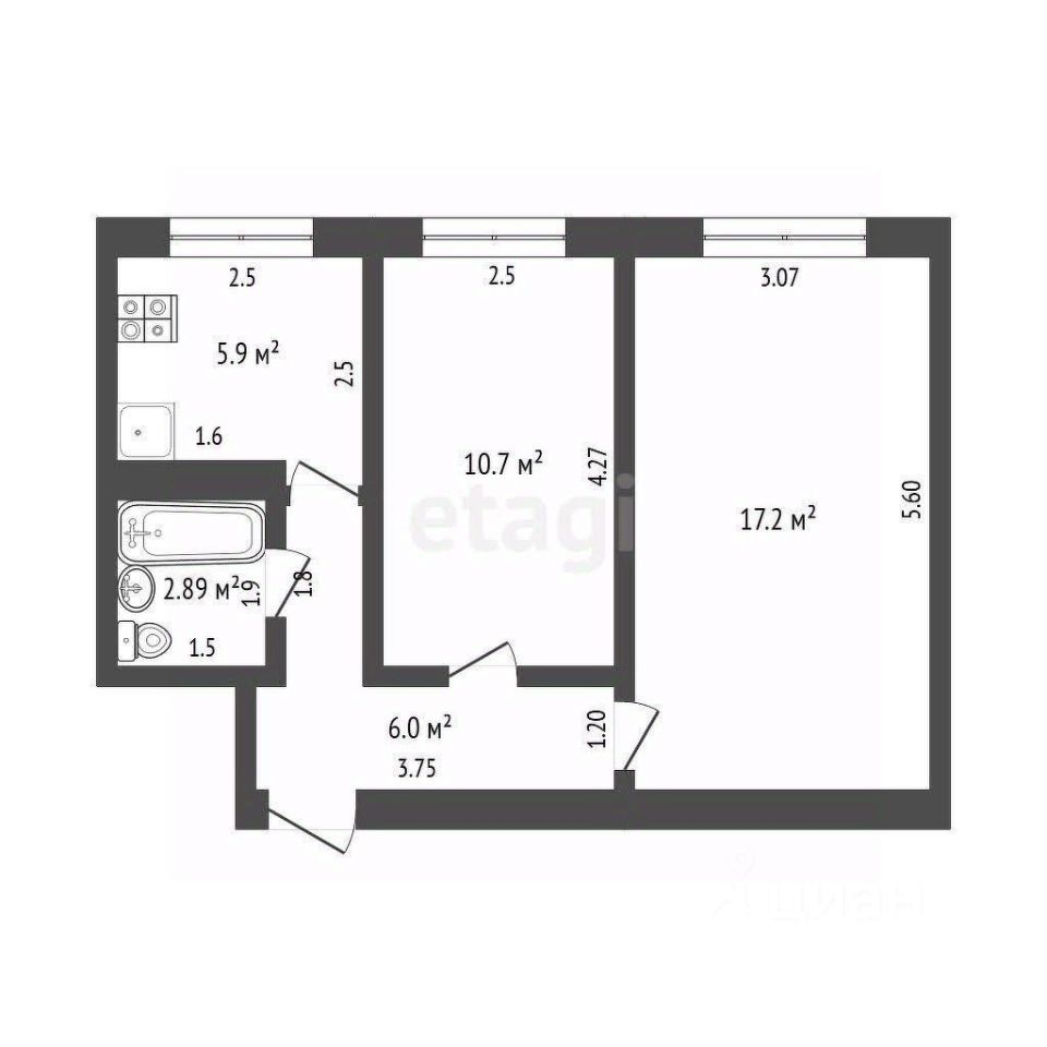 Планировка включает просторный зал (17.2 кв. м), одну изолированную спальню (12 кв. м), кухню 6 кв. м. Площадь составляет 42.6 кв. м, что обеспечивает комфортное проживание для семьи. Окна смотрят на западную сторону. Квартира находится в хорошем состоянии, сухая и теплая. Не требует ремонта и готова к сделке.