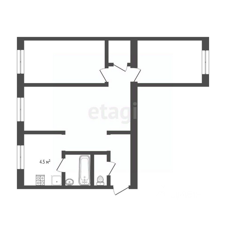 Санузел раздельный, полностью облицован кафелем, с новой ванной без сколов и замененными трубами. Квартира включает в себя три светлых комнаты: просторный зал площадью 19,9 кв. м., который можно использовать как кухню-гостиную, спальню 12,6 кв. м. и уютную спальню 9,7 кв. м. Дополнительное пространство в виде кладовки между спальнями идеально подойдет для хранения вещей или может быть преобразовано в гардеробную.